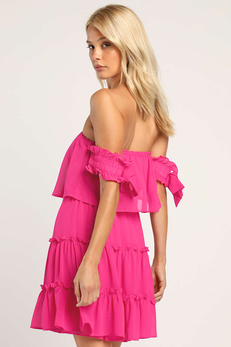 Hot Pink Mini Dress Off The Shoulder Dress Skater Dress Lulus